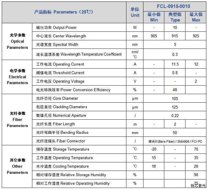高功率半導體激光光纖耦合模塊產(chǎn)品采用單管合束方式單波長輸出,實現(xiàn)915nm,出纖功率10W連續(xù)輸出。